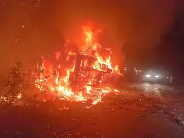 हादसा बुधवार रात करीब साढ़े 8 बजे हुआ। बस गुना से आरोन तरफ जा रही थी। तभी एक डंपर से बस की टक्कर हो गई। टक्कर लगते ही बस पलट गई और उसमें आग लग गई। फिलहाल बस में लगी आग पर काबू पा लिया गया है।