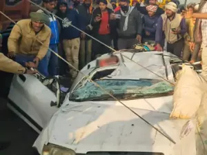 Breaking news- बायपास से जा रही कार पर ट्रक पलटा, 4 की मौत: मृतकों में पति-पत्नी और बेटी भी