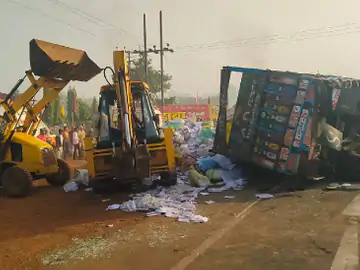 SP विजय कुमार खत्री भी मौके पर पहुंचे। ट्रक में कागज की रद्दी भरी हुई थी। कमानी टूटने की वजह से ट्रक कार पर पलटा। इसके ड्राइवर और क्लीनर घटनास्थल से भाग गए।
