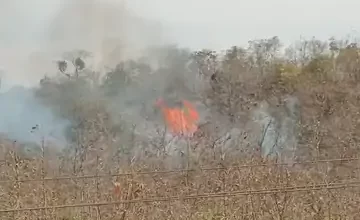 एक बार फिर लगी जंगल में आग: राहगीरों ने वन विकास निगम के अधिकारियों को जानकारी दी