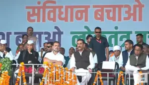 मुरैना के डॉ. भीमराव अंबेडकर स्टेडियम में सभा को संबोधित करते हुए राहुल गांधी ने कहा कि बीजेपी और आरएसएस देश में नफरत, हिंसा और डर फैला रहे हैं। राहुल गांधी ने कहा कि देश में अलग-अलग तरह के अन्याय हो रहे हैं। इसलिए हमने अपनी इस यात्रा में न्याय शब्द जोड़ा है।