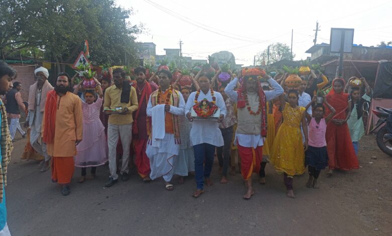 शिव मंदिर से एक किलोमीटर तक निकाली कलश यात्रा: श्रीराम कथा का शुभारंभ