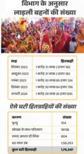 ओवरऑल देखें तो अक्टूबर महीने तक 1 करोड़ 31 लाख 2 हजार 182 हितग्राही थीं, जो घटकर अब 1 करोड़ 29 लाख 26 हजार 835 रह गई। यानी योजना में कुल 1 लाख 75 हजार 347 महिलाओं की संख्या घटी हैं।