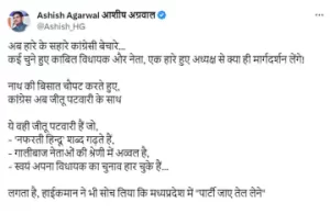 - अन्य पिछड़ा वर्ग: जीतू पटवारी इंदौर के राउ से विधायक रहे हैं। वे इस बार चुनाव हार गए। पटवारी अन्य पिछड़ा वर्ग (ओबीसी) वर्ग से आते हैं।