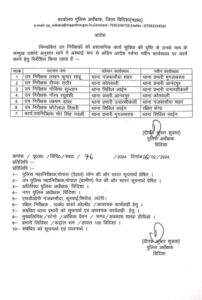 पुलिस अधीक्षक दीपक शुक्ला ने आगामी लोकसभा चुनाव और लंबे समय से थानों में जमे निरीक्षकों और उप निरीक्षकों का तबादला सूची जारी की है।